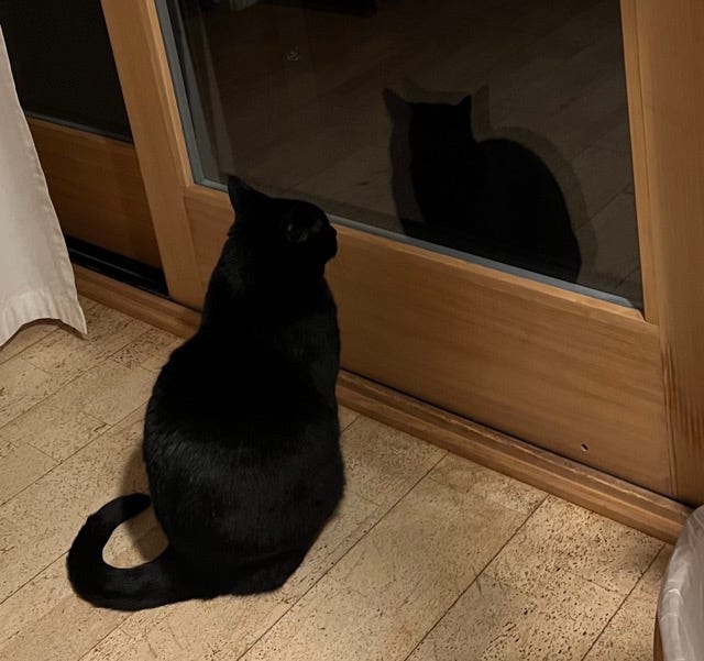It’s 3:53am. My coffee is cold. Shadow is sitting by the sliding glass door staring into the nighttime and waiting for the light.